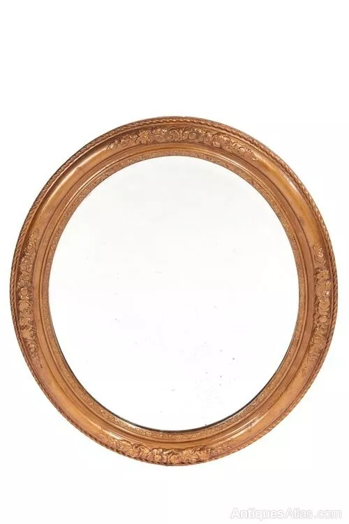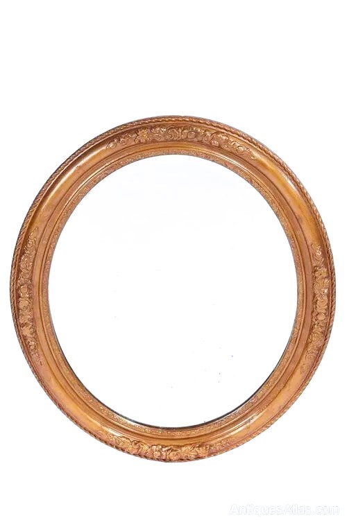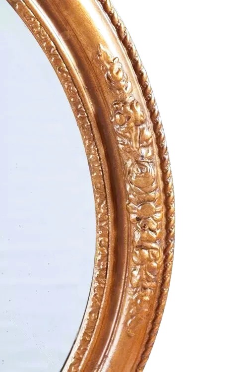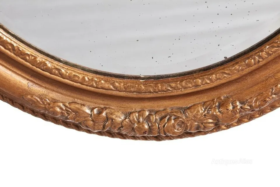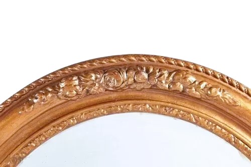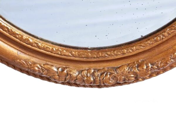 Antique carved gilt oval wall mirror with original mirror plate. C. 1900. MeasuresL: 74, W:64CM, D: 4CM