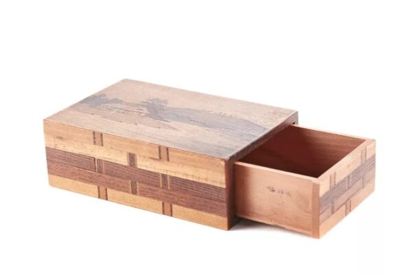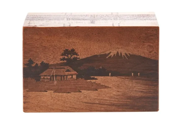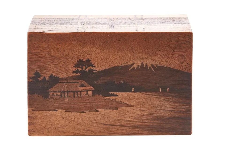 This is an unusual Japanese antique specimen wood puzzle Box depicting mount Fujiyama. Lovely colour and condition. c.1910
